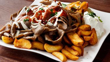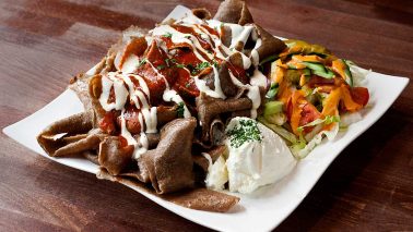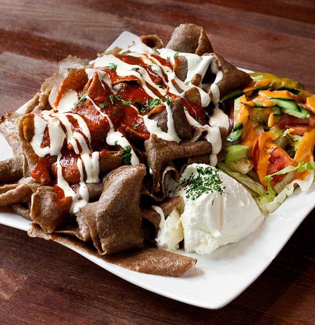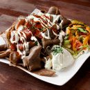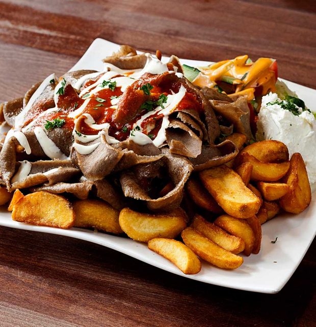 Kaikkiin kebabeihin kuuluu salaatti ja vaihtoehtoisesti joko tulinen tai mieto kebabkastike tai valkosipulikastike.