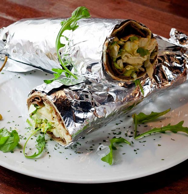 Kaikkiin rulliin kuuluu salaatti ja vaihtoehtoisesti joko tulinen tai mieto kebabkastike tai valkosipulikastike.